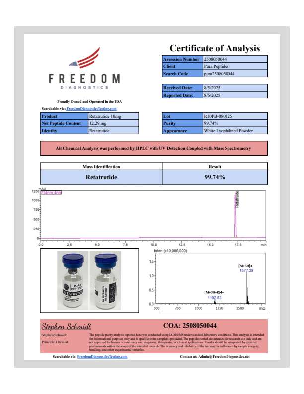 Retatrutide (RETA-10) 112mg is supplied exclusively for laboratory and analytical research. Retatrutide (RETA-10) 112mg is prepared and packaged to support consistent handling in research environments.